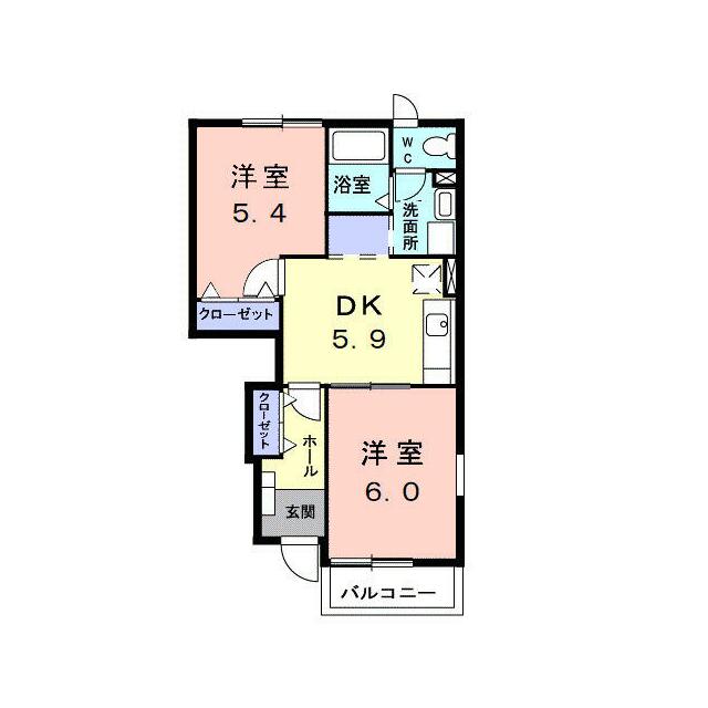 | 間取り | 2DK(洋5.4・洋6・DK5.9) | 主要採光面 | - |