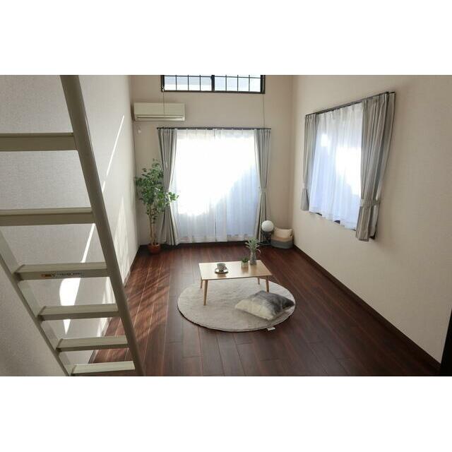 | 設備 | 宅配BOX バス・トイレ別室 室内洗濯機置場 シューズボックス モニタ付インターホン ガスコンロ可 シャワー付洗面化粧台 洗面所独立 シャワー ロフト 給湯 出窓 フローリング プロパンガス エアコン バルコニー インターネット使用料無料 CATV 温水洗浄便座 | ||